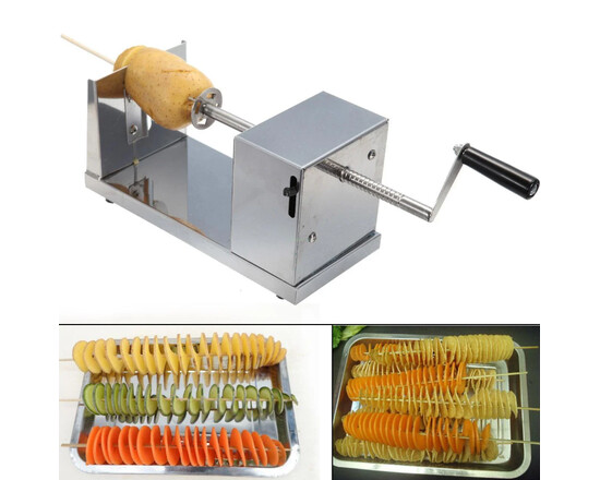 Iubiti cartofii prajiti sau chipsurile si credeti ca aceasta leguma nu mai are niciun secret culinar? Venim cu ceva nou pentru dumneavoastra deoarece va punem la dispozitie Masina de taiat cartofi in spirala. Cu aparatul pentru feliat cartofi si alte legume gen morcovi, castraveti, va puteti distra realizand intortocheate de cartofi sau rondele de morcovi, toate acestea de acasa. Tot ce trebuie sa faceti este sa puneti un cartof in masina si incepeti rasucirea. Aparatul este ideal pentru a face chipsuri de cartofi rasucite, cartofi tornada si snacks-uri Veggie sau orice aveti in imaginatie. si este foarte usor de curatat.